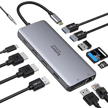 USB C Docking Station Dual Monitor, 12 in 1 USB-C Triple Display Docking Station to 4K HDMI+DP Port+2 USB3.0+2 USB 2.0…