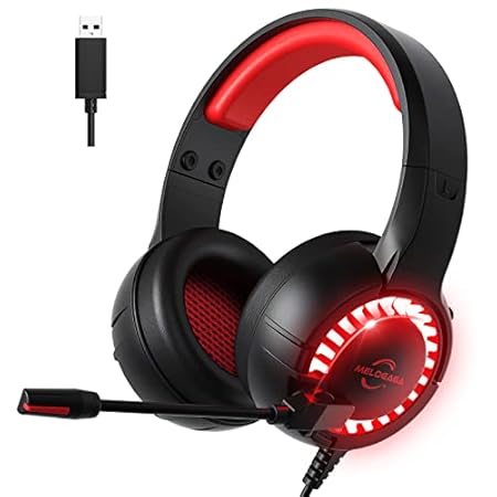 MELOGAGA USB Gaming Headset for PC PS4 PS5, 7.1 Surround Sound Headphones with RGB Breathing LED Lights& Noise Canceling…