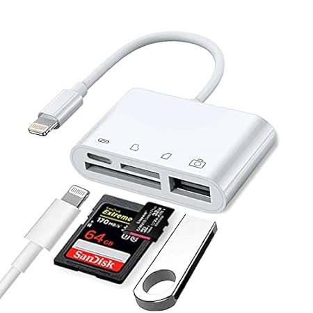 SD Card Reader for iPhone, Portable 4 in 1 USB Camera Adapter for iPhone, USB Female OTG Adapter Compatible with SD/TF…