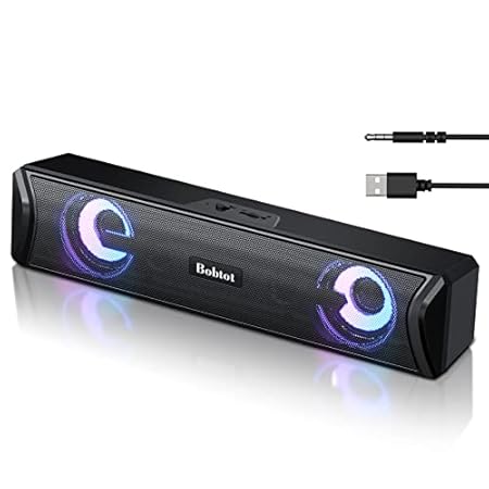 Bobtot Computer Speakers Bluetooth Desktop Soundbar – HiFi Stereo Audio RGB Gaming Mini Subwoofer Wired USB Power Desk…
