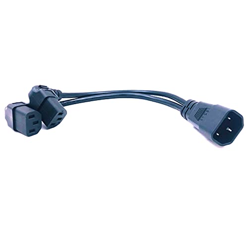 This 90 degree power cord splitter is C13C14 adapter converter. Widely used for extension of AC power cables, compatible with desktop computers, LED-lit monitors, powered speakers, ceiling mounted projectors, HDTVs, laser printers and more.