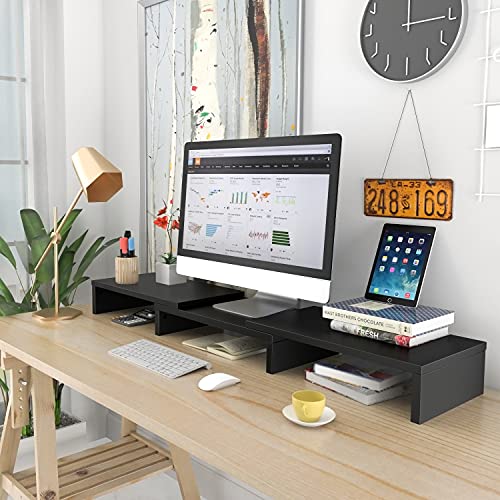5Rcom Dual Monitor Stand, Desk Monitor Riser with 48.2″ Adjustable Length and Angle, Desk Organizer, Computer Stand for Laptop Desktop Monitor, Black
