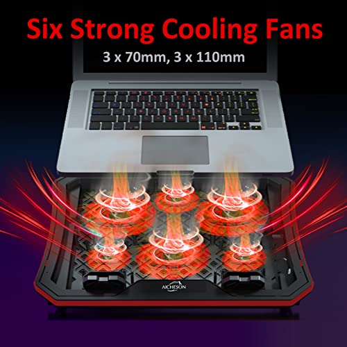AICHESON Laptop Cooling Pad for 15.6 to 17 Inch Laptops, Compatible with Lapdesk and Desk Use, 6 Cooling Fans with Red…