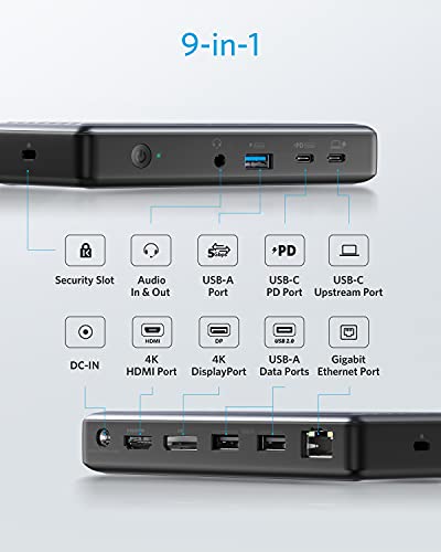 Anker USB C Docking Station, PowerExpand 9-in-1 USB-C PD Dock, 60W Charging for Laptop, 20W Power Delivery Charging, 4K…