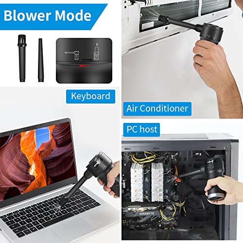 【Air Blower & Mini Vacuum 2-in-1】Addoped to advanced 2-in-1 technology of blowing and suction. This air duster is really helpful for you to not only blow the dust away but also to suck them in, keeping the surface free of dirt. This air duster is suitable for cleaning computers, keyboards, cameras, electronic instruments, electronic components, car seat and interior and so on.