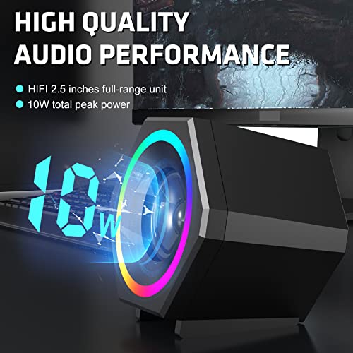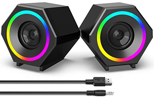 Computer Speakers, USB Powered Stereo Speakers for PC, Desktop, Monitor, Small Size – with RGB Lights, Volume Control, 3…