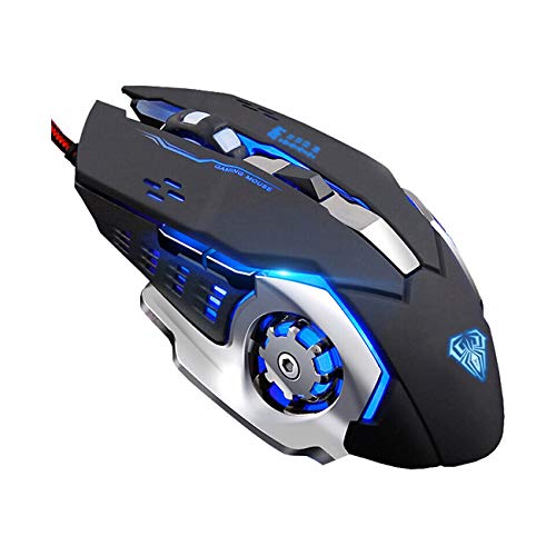 Gaming Mouse, Ergonomic USB Wired Gaming Optical Mice with 6 Programmable Buttons and 4 Colors LED Backlight, 4 DPI…