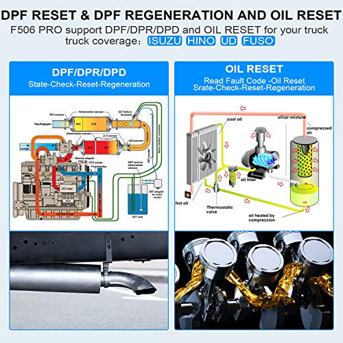 ➤【DPF Reset & Regeneration and Engine Oil Reset】-OEM level DPF regeneration function for HINO FUSO ISUZU UD,including DPF Regeneration,DPF reset,BlueTec,DPF Related Information Reset,DPR state reset,Forced DPR regeneration,Differential pressure check,DPD Forced Regeneration…etc;OEM level Engine Oil Reset function for HINO FUSO ISUZU(UD can not support Oil light function) provides you with the highest quality maintenance,Ensure your driving safety.