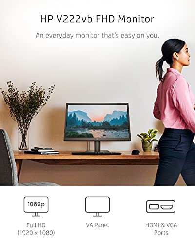 WARRANTY AND SUSTAINABILITY – Rest easy and work confidently with an environmentally conscious and energy-efficient monitor, backed by HP standard 1-year limited and shipped in completely recyclable packaging (4).; Display size: 21.5 inches; Display technology: LED