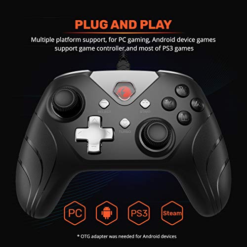 【3.2M DETACHABLE USB CABLE】【COMPATIBILITY】PC / Laptop Computer(Windows 10/8/7/XP), Steam, Play Station 3(PS3), Android Mobile Phone/Tablet/TV/Box(version 4.0 or above, the device needs support OTG function).【Need a OTG adapter or cable for the Android device with Type-C or Micro-USB port.】