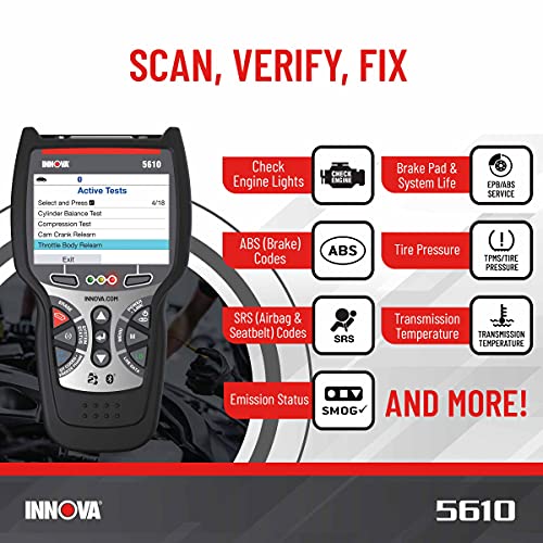 MAINTAIN PEAK PERFORMANCE AND SAFETY ON THE ROAD – Innova’s 5610 bidirectional scan tool helps you easily find the problem and fix the problem. The included car code scanner app, RepairSolutions2 gives you real-time solutions to troubleshoot and fix your automotive issues. Get verified fixes from this automotive scanner, find and purchase the exact part required for repair, view maintenance schedules, receive technical bulletins, recalls, and access to Innova’s best-in-class database.