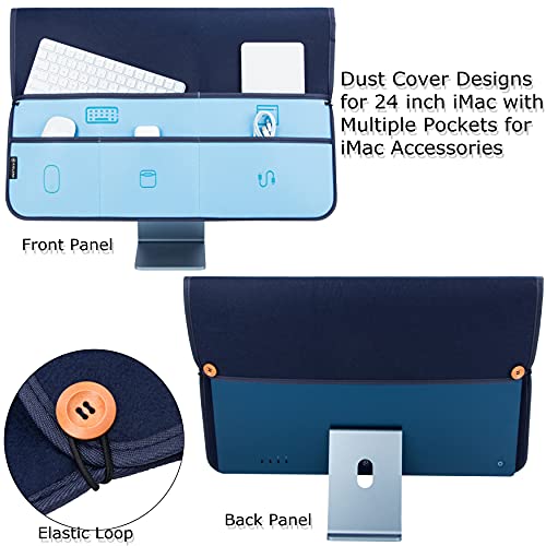 A Dust Cover to Hold All: Our dust cover for iMac 24in features with multiple pockets to holding magic keyboard, magic mouse, magic trackpad, power adapter, USB charge cable, etc.