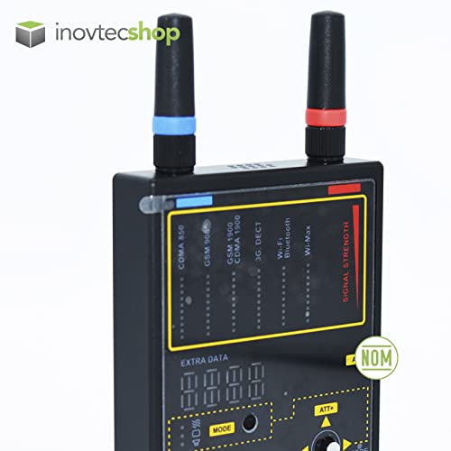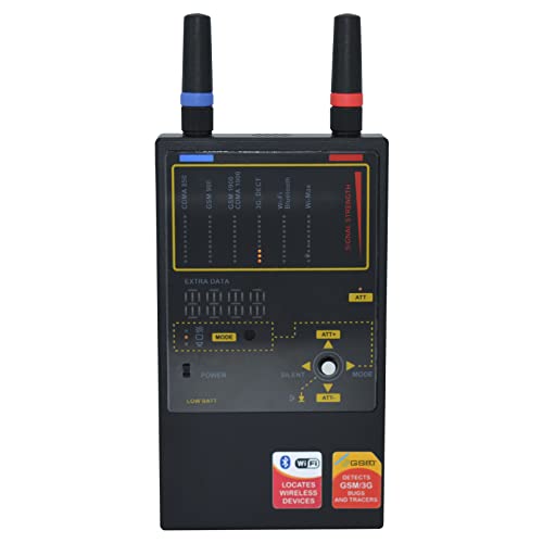 The DD1207 a reliable tool for tracing different digital transmissions such as GSM, Bluetooth and other wireless transmissions (Cellphones and GPS transmissions). The sensitivity of a common RF detector (bug detector) is spread along a wide frequency range, usually 3, or even 6-7 GHz. This means the common detector cannot detect such weak and non-continuous signals as Bluetooth, Wi-Fi or Wi-Max. Even more powerful signals like GSM-1800 are also hard to detect because of their low sensitivity at higher frequency ranges. Each detection type has its own bar graph to show signal strength. There is an attenuator button to use when honing in on a signal. In “display mode” when a signal is detected the signal type will be shown in the “extra data” display. The DD1207 detection devices this unit also has silent, listen, visual, and vibration mode. Portable device for the inspection and location of wireless sources -6 channels of detection for different kinds of protocols -Detection of GSM/CDMA/3G -Detection of Bluetooth/Wi-Fi/Wi-Max -Can be used for tracing both regular sources and illegal eavesdropping devices -6 bar graphs with 10-segments each, for accurate location of RF sources -4 modes: Silent, Vibration, Visual and Listen -2 levels of sensitivity (attenuator) -Extra display shows which signal type has been detected -Durable metallic body -Microprocessor controlled -Setup mode with selection the threshold level for vibration. Detect the following kinds of bugging devices: -GSM baby-monitors/GSM alarm/GSM bugs -GSM/GPRS/EDGE/3G video cameras -GSM Spy phones -GPS Trackers -Bluetooth bugging devices -Spy phones with Bluetooth/Wi-Fi -Wi-Fi/Wi-Max bugging devices -Wireless video cameras 2.4 Ghz Detection range is 30 feet