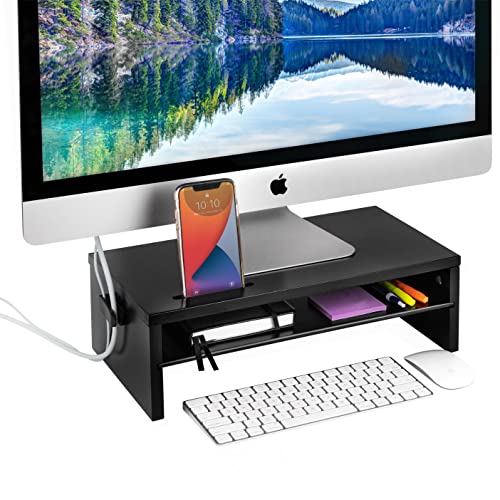Monitor Stand – Two Tier Wood Desk Shelf for Monitor, Printer or Desktop Computer. Cable Management, Phone Slot and…