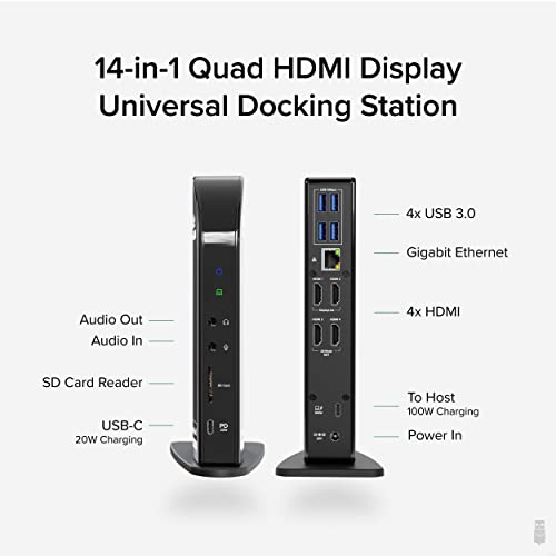 Plugable 14-in-1 USB C Docking Station with 4X HDMI, Quad Dock with 100W Charging, 4X HDMI Displays, Compatible with…