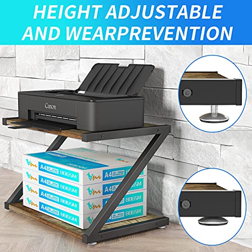 Rustic Wood Desktop Printer Stand- Home Printer Stands Table Top, 2 Tier Vintage Printer Table Desk Space Organizer for Office Fax Machine, Scanner, Files, Books with Adjustable Anti-Skid Feet
