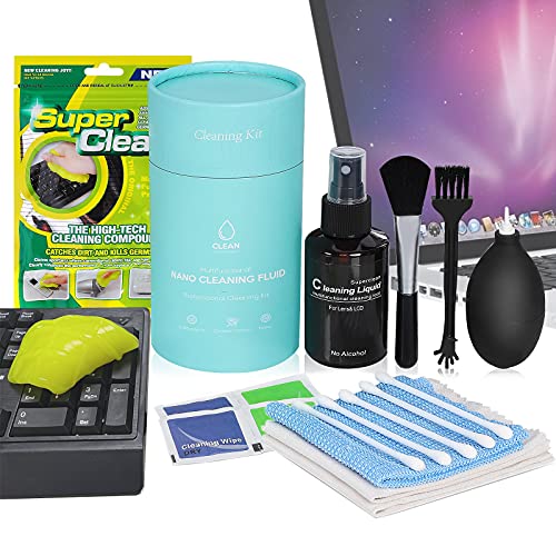 Multi Use Products: The cleaner fluid is gentle to use on electronic screen, such as TV, smartphone, computer, tablet screen. The solution can excellently clean the monitor, making it like a brand new one. The putty works great for cleaning keyboard, and the kit also comes with brushes wipes & cloths that are good for cleaning cameras, Airpods, GoPro, and so on.