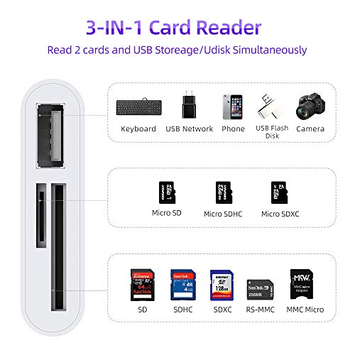 【Super Practical Port】: SD/TF (Micro SD) dual card slot, compatible with SD, SDHC, SDXC, MicroSD, MicroSDHC, MicroSDXC, suitable for various driving recorders/trial cameras/digital camera memory cards. You can connect USB peripherals such as USB flash drives, mice, keyboards, card readers, cameras, printers, hard drives and many other USB connected devices.