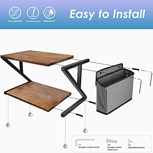 ✅【Double Tier Wood Printer Stand】- Our desktop printer stand comes with a 2-tier design also with a side storage bag. The side bag could storage files and papers, which help you organize your office desk and maximize the space. Four adjustable anti-skid feet are included to keep the desk organizer stable and prevent scratch on tabletop. The incomparable storage capacity is beyond your expectation. Overall Dimensions: 17.32”/Lx12”/Wx11.81”/H